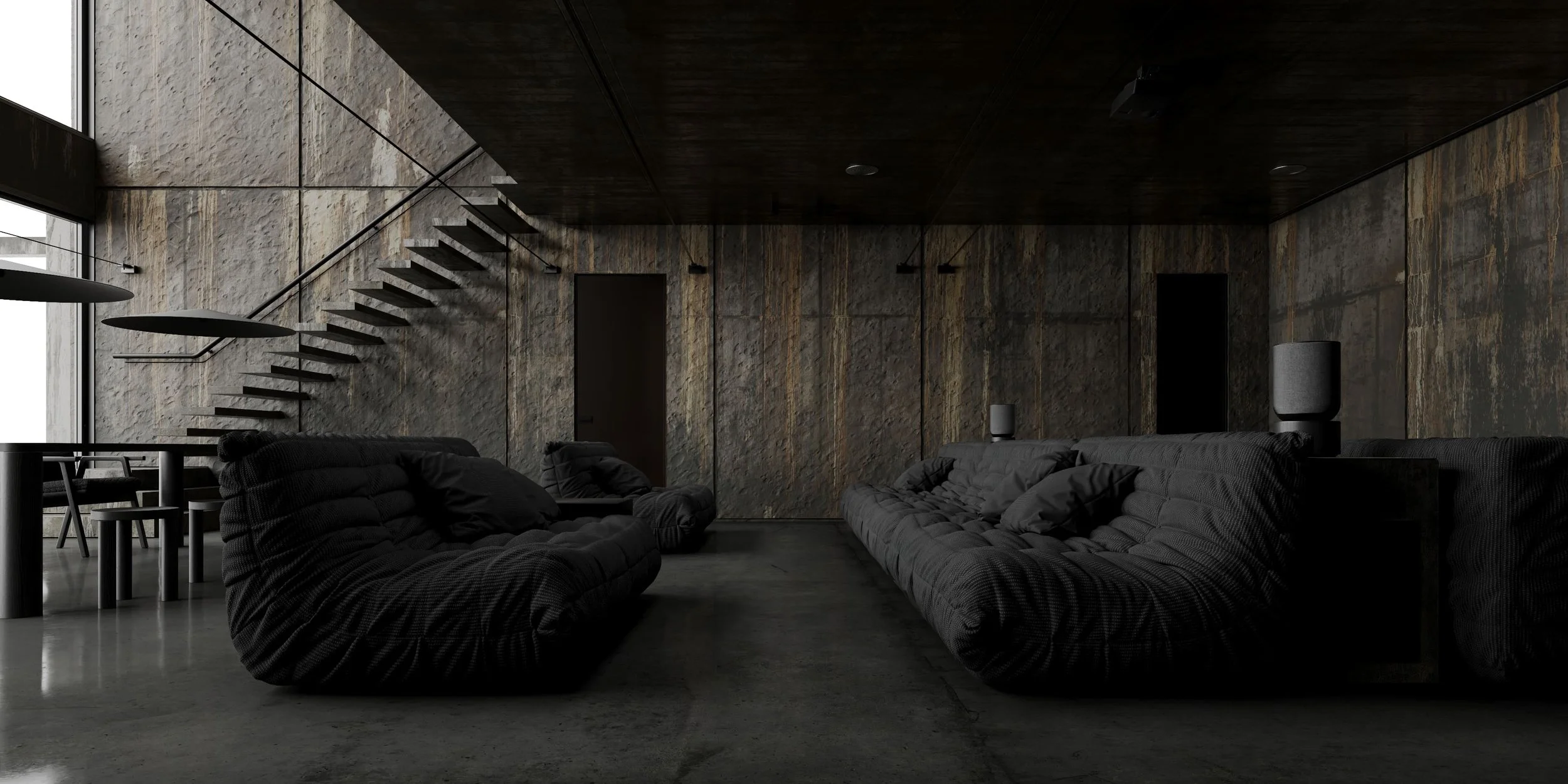 In modern interiors, brutalism reveals itself as a deep and calm direction. We create space through a combination of warm greys, natural wood, and soft light. It’s about the feeling of weight, silence, and the sincerity of materials. Such an interior is built for those who value true comfort that arises from simplicity, rather than from a surplus of objects.